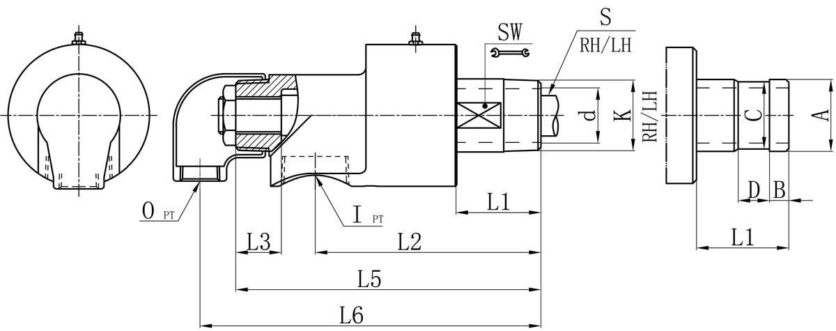 | Model | K | I | O | S | d | L1 | L2 | L3 | L5 | L6 | SW | 法蘭式外管尺寸對照表 | |||