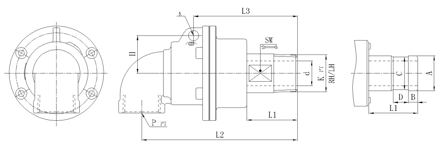 | Model | K | P | d | L1 | L2 | L3 | N | SW | H | 法蘭式外管尺寸對(duì)照表 | ||||