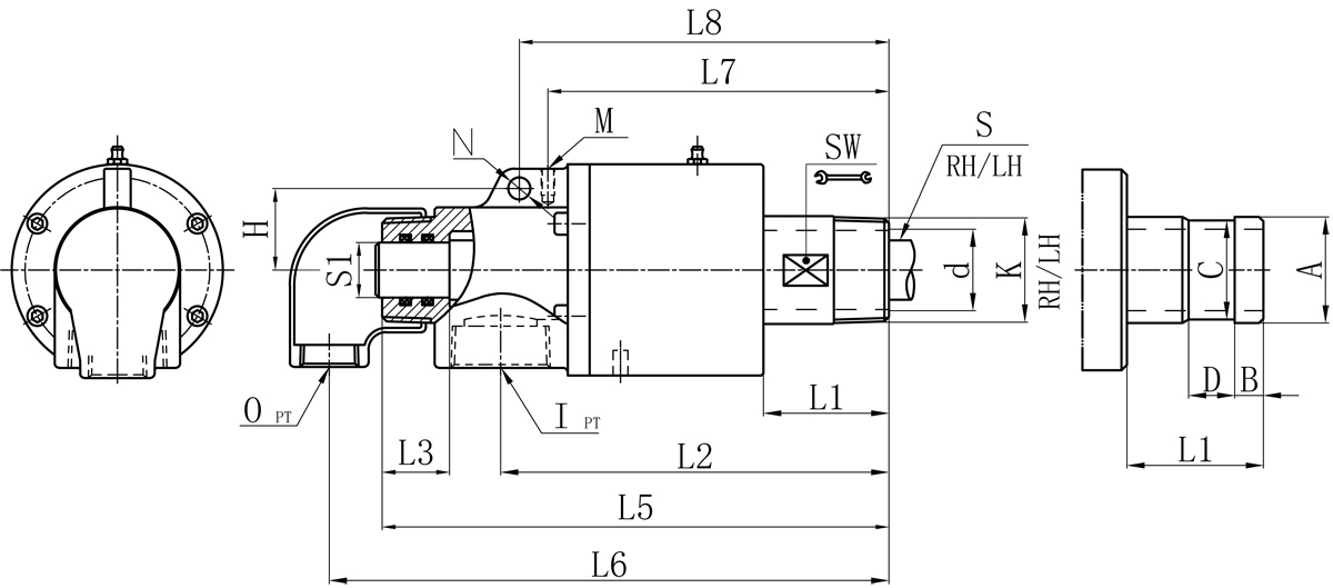 Model K I O S1 d L1 L2 L3 L5 L6 L7 L8 M N H SW 法蘭式外管尺寸對(duì)照表