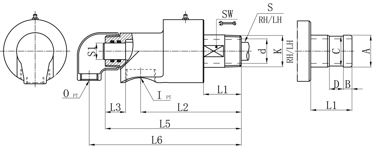 | Model | K | I | O | S1 | d | L1 | L2 | L3 | L5 | L6 | SW | 法蘭式外管尺寸對(duì)照表 | |||