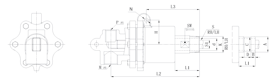 | Model | K | M | P | S | d | L1 | L2 | L3 | N | SW | H | 法蘭式外管尺寸對(duì)照表 | ||||
