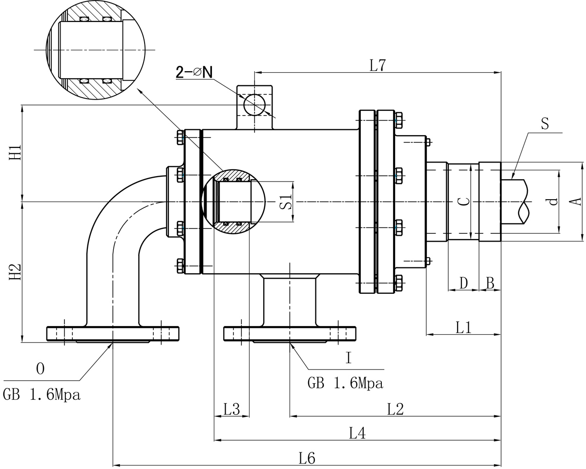| Model | I | O | S1 | d | L1 | L2 | L3 | L4 | L6 | L7 | N | H1 | H2 | 法蘭式外管尺寸對照表 | |||