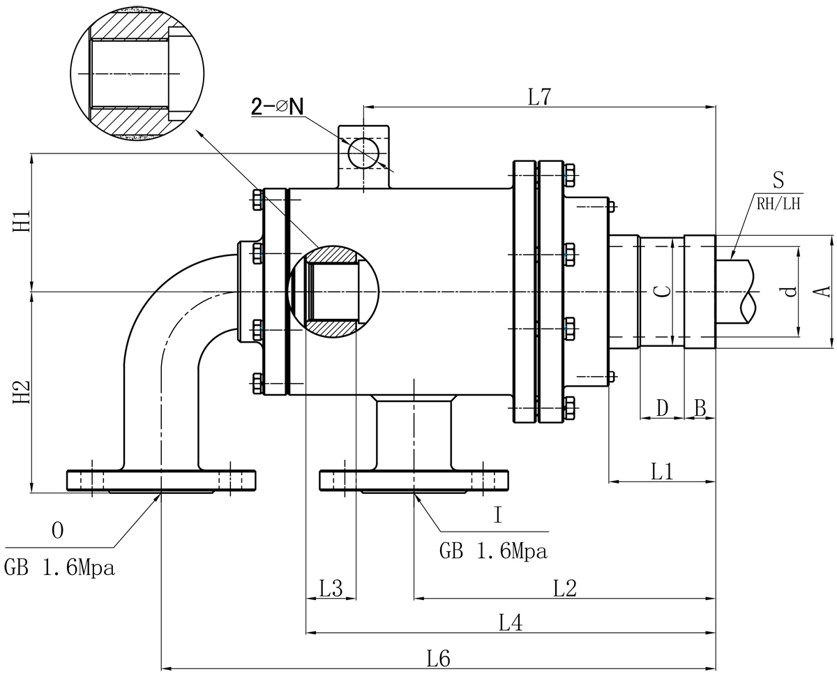| Model | I | O | S | d | L1 | L2 | L3 | L4 | L6 | L7 | N | H1 | H2 | 法蘭式外管尺寸對照表 | |||