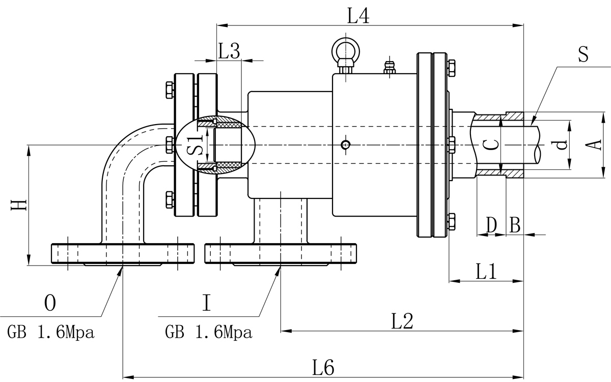 Model I O S1 d L1 L2 L3 L4 L6 H 法蘭式外管尺寸對照表
